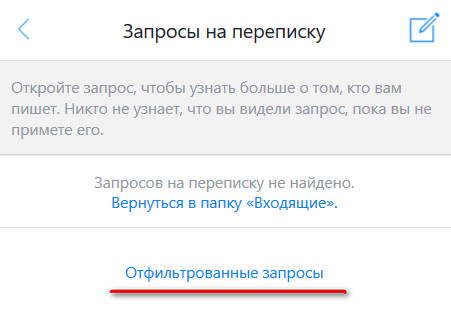 Так вот. Если зайти в эти "Запросы на переписку", то там может оказаться пусто - полковнику никто не пишет. Но обратите внимание на ссылку "Отфильтрованные запросы".