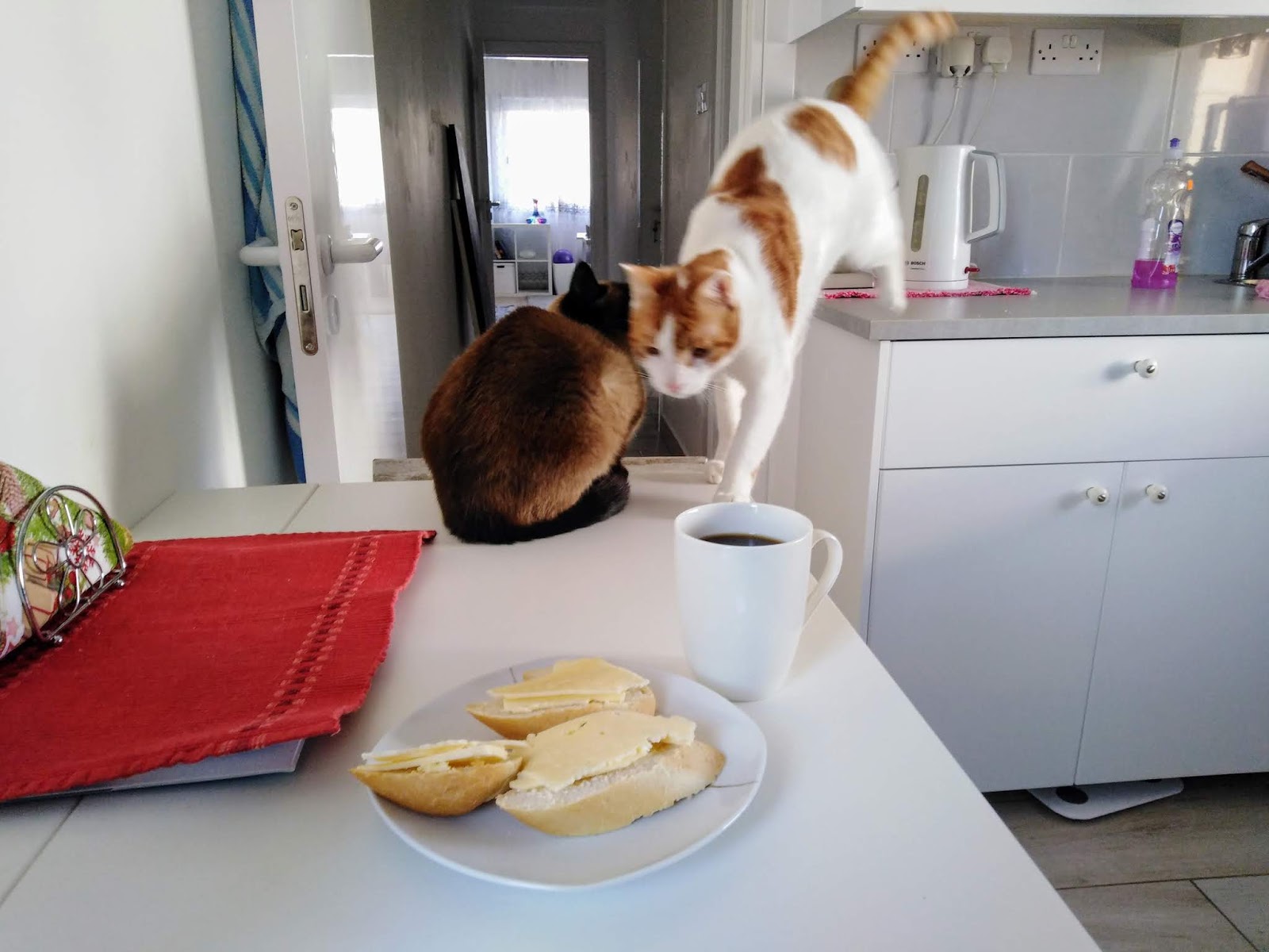 Поскольку тема про кошек - надо добавить что окрестные кошаки часто ходят мимо собачьей "квартиры", и если не подходят к миске, то пес на них не особо реагирует. А вот если подходят, и там лежит недоеденная еда - совсем другое дело! Котикам приходится резко улепетывать.