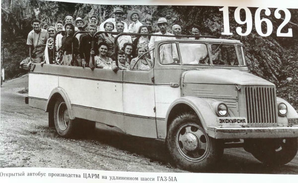 Широкие подножки вдоль бортов убрали, дверь оставили только одну справа (даже водительской слева не было). Делали две "основные" версии - на 19+1 (экскурсовод) пассажиров и чуть длиннее на 23+1. А вообще двух одинаковых машин не было, постоянно вносили изменения и каждая чуть отличалась от прочих.